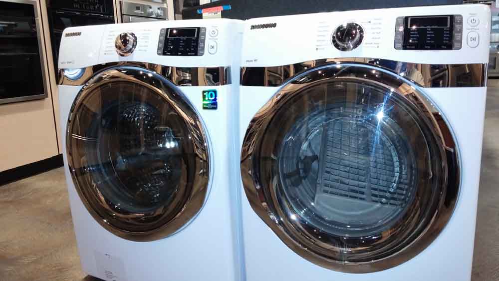 Samsung WF433BTGJWR 27" Front-Load Washer with 4.3 cu. ft. Capacity, 13 Wash Cycles, 10 Options, VRT Plus Technology, Steam Wash, PureCycle and Energy Star RatedSamsung DV433ETGJWR 27" Electric Dryer with 7.5 cu. ft. Capacity, 13 Drying Cycles, 9 Options, Sanitization Cycle, Steam Dry, Tumble-Free Drying, Delay Start and Smart Care>display< qty 1 pair available in store onlyRead More